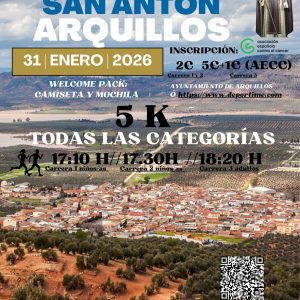 III EDICIÓN. CARRERA POPULAR DE ARQUILLOS. 1. INFORMACIÓN GENERAL: El Excmo. Ayuntamiento de Arquillos (Jaén), en colaboración con la empresa Deportime organizan la tercera edición de esta bonita carrea popular que recorrerá las calles de este pueblo de la comarca del condado en honor a su patrón SAN ANTÓN ABAD. Fecha: Sábado, 31 de Enero […]